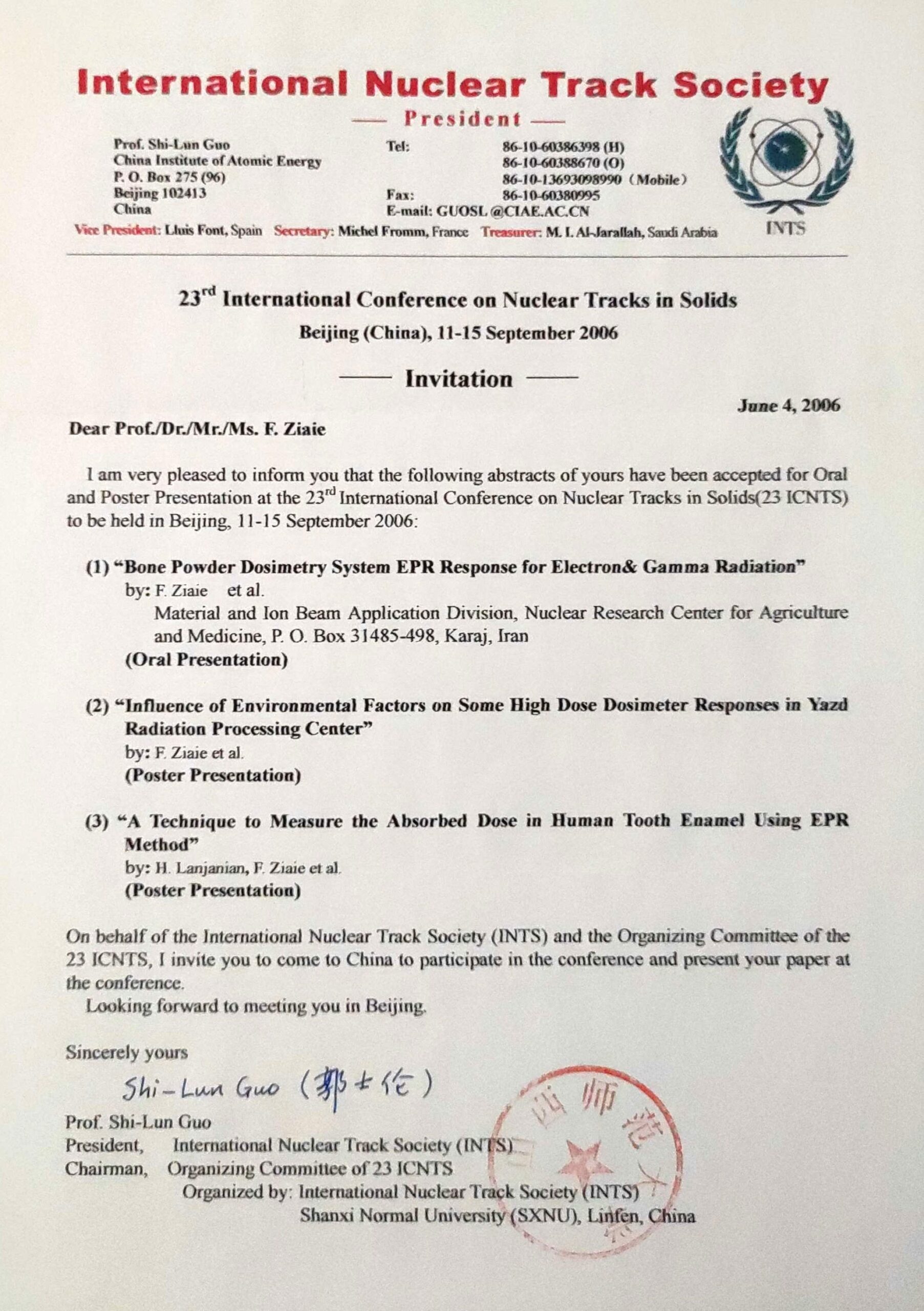 - دوره آموزشی، پراش نوترون پودر، انستیتو انرژی اتمی چین، پکن، چین، ۱۹۹۲