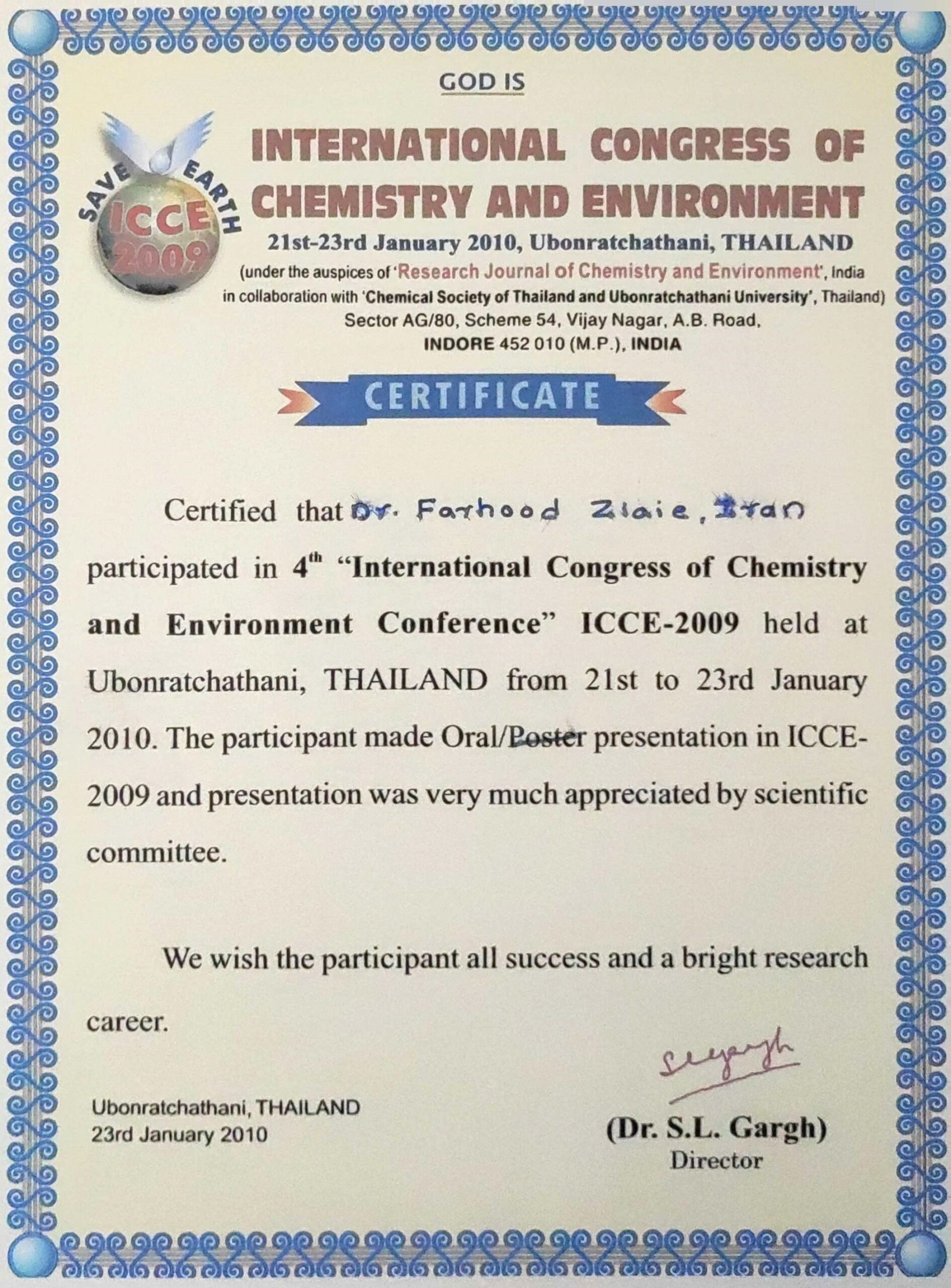 - دزیمتری گذشتهنگر با استفاده از هیدروکسیآپاتیت نانوساختار سنتز شده، چهارمین کنگره بینالمللی شیمی و محیط زیست، آبون راچاتانی، تایلند، 2010