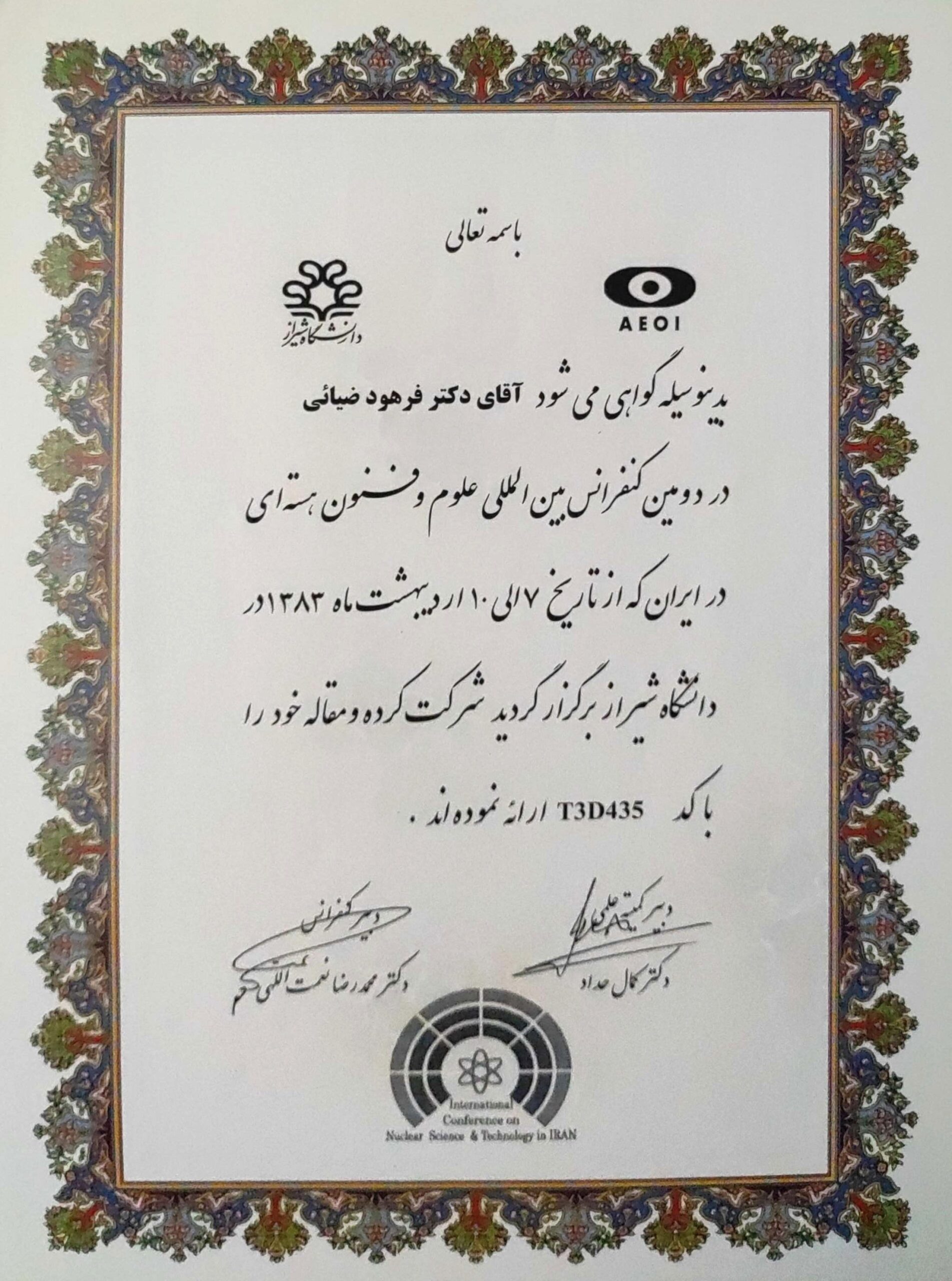 - کسب مرتبه دانشیاری، پژوهشگاه علوم و فنون هسته ای، ۱۳۸۶