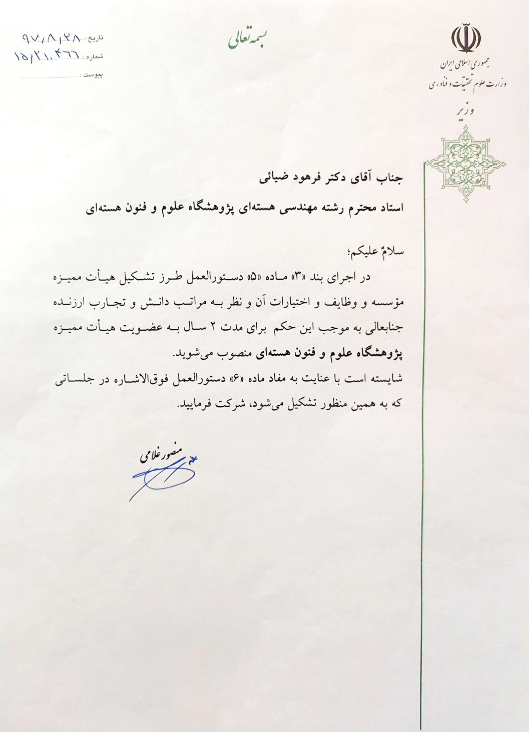 - هیئت ممیزه، پژوهشگاه علوم و فنون هستهای، 1397-1398